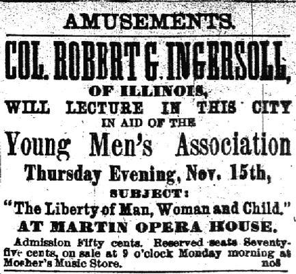 images/Other People/Robert Green Ingersoll/The Libery of Man, Woman and Child Lecture Ad.jpg