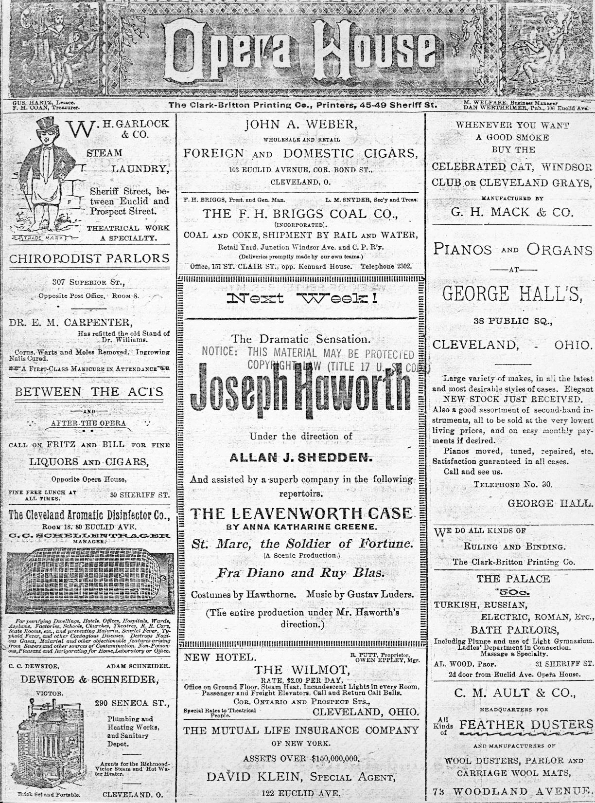 images/Other Actors/Robson & Crane/New York Times ad for A Comedy of Errors (9-27-1885) with William Haworth-Resized.jpg